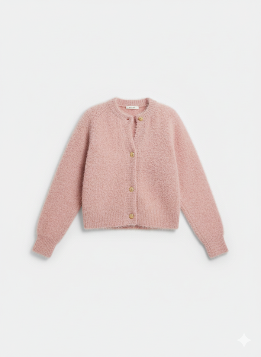 Les boutons dorés ressortent magnifiquement sur le rose doux.